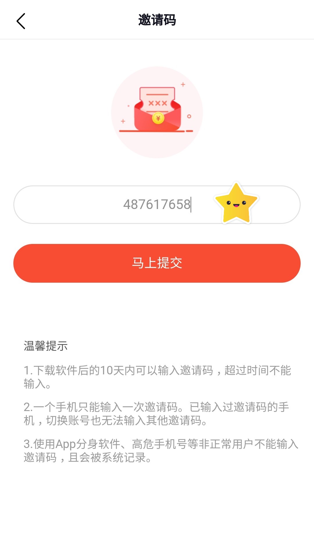 福利页面, 填写邀请码【487617658】,或者复制口令